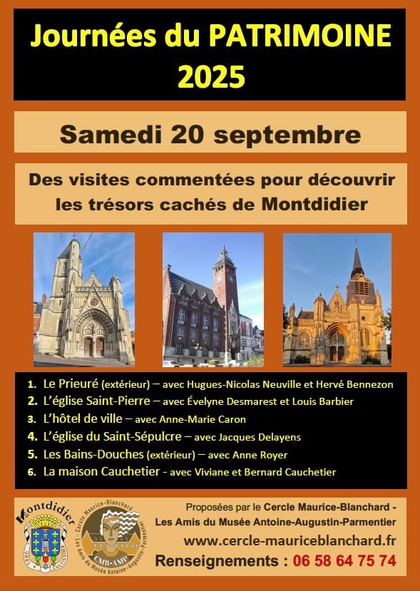 Le CMB – Les Amis du Musée Antoine-Augustin Parmentier vous proposent dans les différents édifices et lieux, des visites pour découvrir ou redécouvrir les trésors cachés de Montdidier.