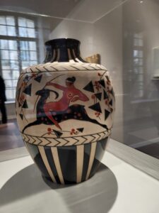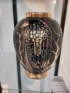 Une production de vases, bonbonnières, soliflores, coupes, cendriers et autres potiches en céramique, tous siglés Montières. Une marque née en plein Art nouveau et qui va briller avec l’essor de l’Art déco (jusqu’à l’Exposition universelle de 1937 à Paris).